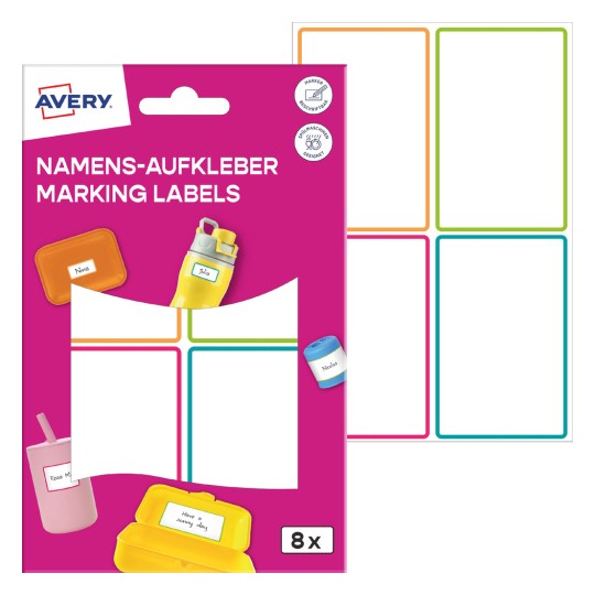 Και αφού ήδη έχετε αρκετά στη λίστα σας "πώς να οργανώσω το χάος της οικογένειας", θα σας κάνουμε τη ζωή λίγο πιο εύκολη: με τις υπέροχα πολύχρωμες ετικέτες σήμανσής μας! Απλώς γράψτε το όνομα και το επώνυμο στις ετικέτες σήμανσης με τα πολύχρωμα πλαίσια χρησιμοποιώντας έναν ανεξίτηλο μαρκαδόρο, αφήστε να στεγνώσει για λίγο και κολλήστε σε ό,τι θέλει να “ξεφεύγει” από καιρό σε καιρό. Το μικρό μέγεθος 33 x 46 mm ταιριάζει τέλεια σε κουτιά, μπουκάλια και (φαγητά) δοχεία, αλλά και σε παιχνίδια και άλλα σχολικά είδη στον παιδικό σταθμό, στο σχολείο και στα κέντρα δημιουργικής απασχόλησης. Παρεμπιπτόντως: οι πολύ χρήσιμες ετικέτες σήμανσής μας είναι επίσης έτοιμες να βοηθήσουν και τους κάποιες φορές αφηρημένους ενήλικες...